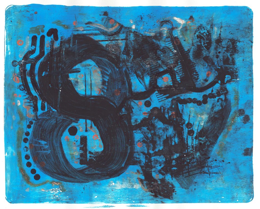 Monotypie verlangt ein feines Gespür für Material, Farbe und Rhythmus. Trotz der Einfachheit der Technik eröffnet sie eine große Tiefe. Mit jedem Experiment, jedem Stilwechsel wächst die Komplexität – und mit ihr die Spannung des kreativen Prozesses.